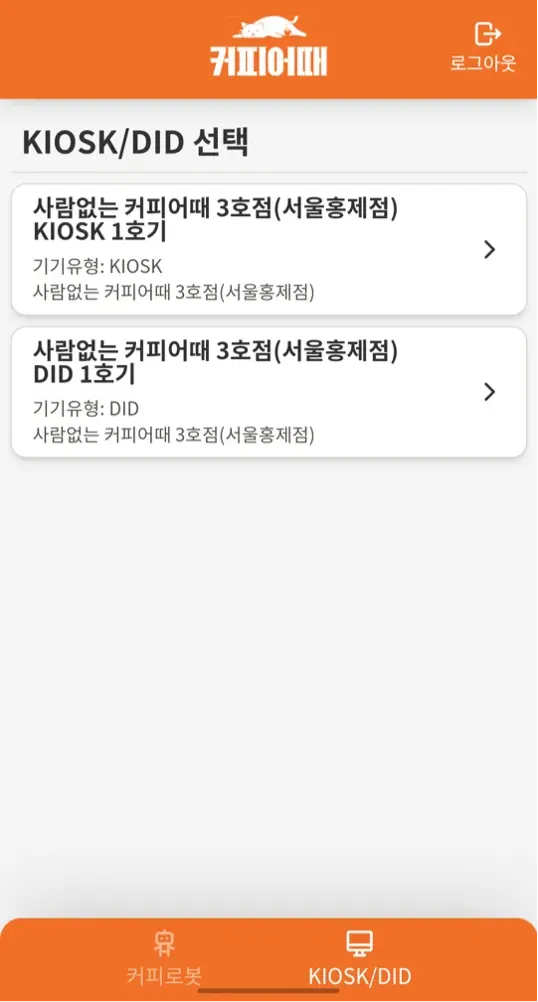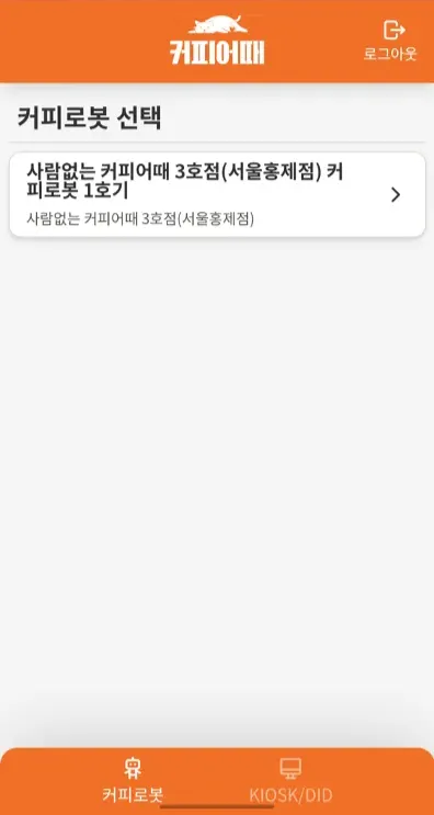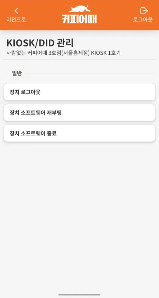 이를 통해 커피어때 점주관리서비스로 커피로봇/KIOSK/DID에 대한 원격 수동 제어할 수 있음.