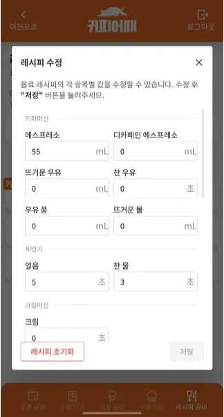 점주가 자신의 점포의 메뉴 레시피를 매장상황이나 점주/고객 니즈에 따라 커스터마이징할 수 있는 기능을 제공함.