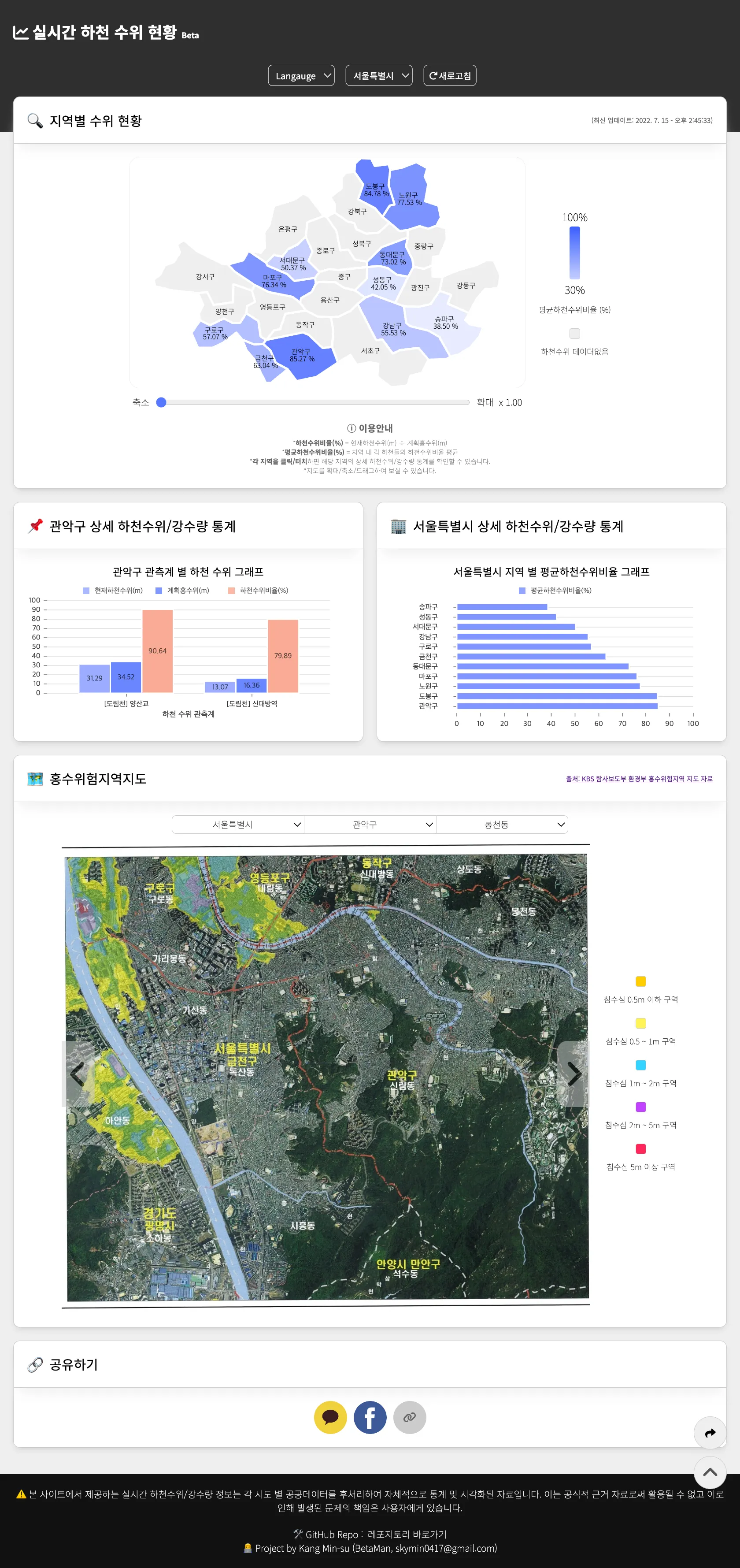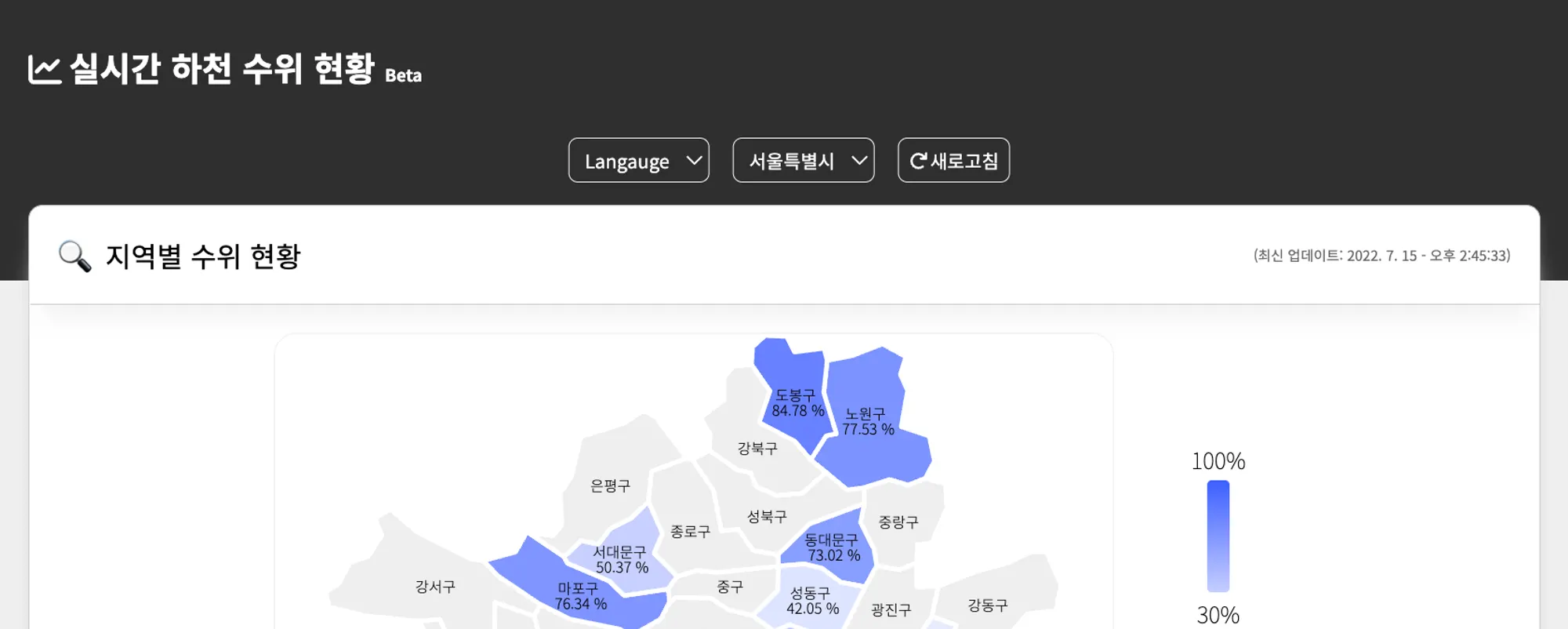 서울시 하천수위 현황 API를 지도 인포그래픽으로 시각화 기능