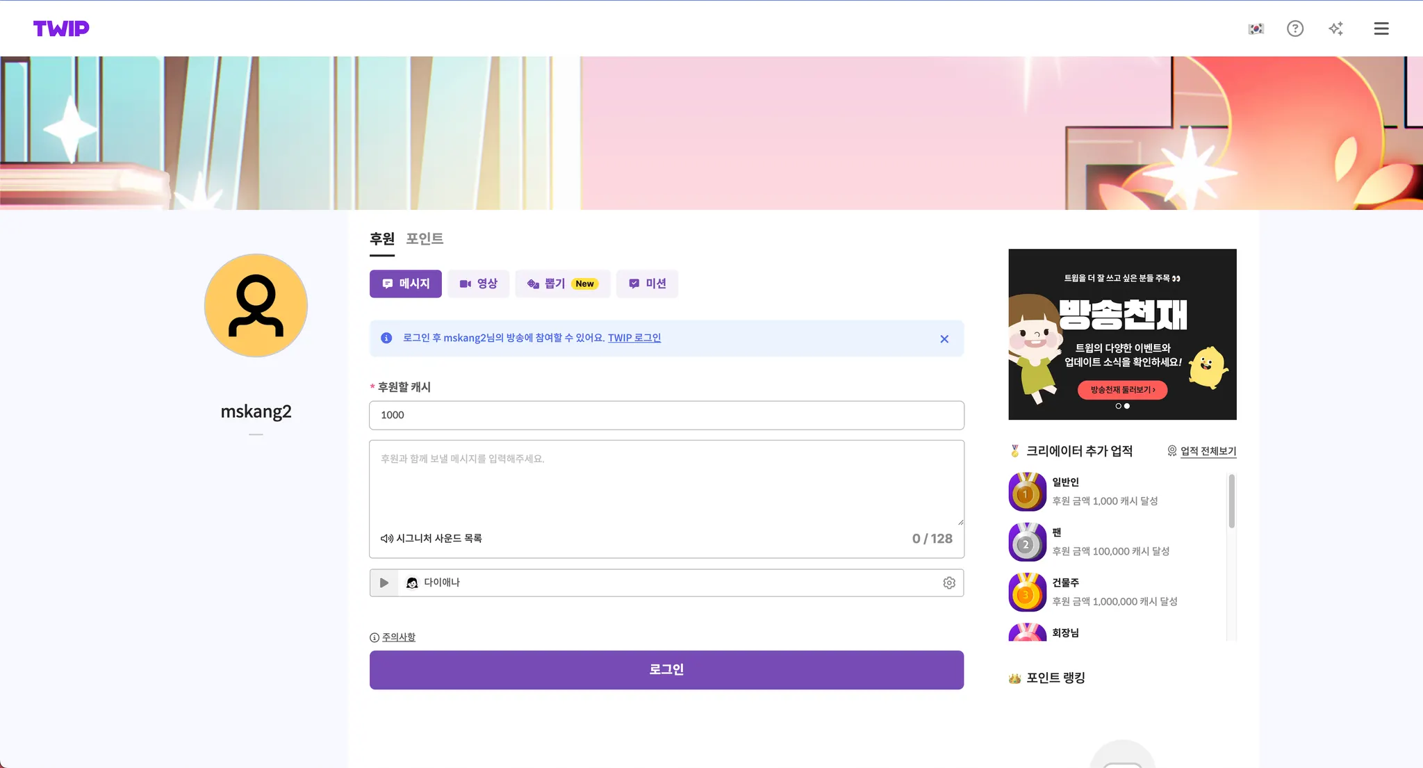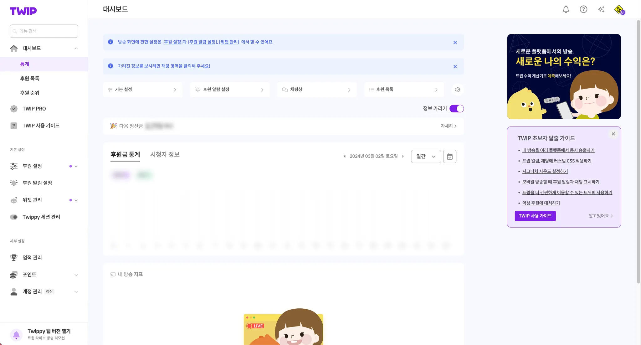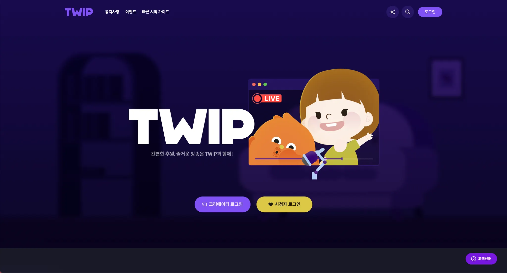 TWIP(https://twip.kr) : ๋์ ๊ฑฐ๋์ก 2,000์ต์ ์ธํฐ๋ท ๋ฐฉ์ก ์ค๋ฒ๋ ์ด & ํ์ ํ๋ซํผ