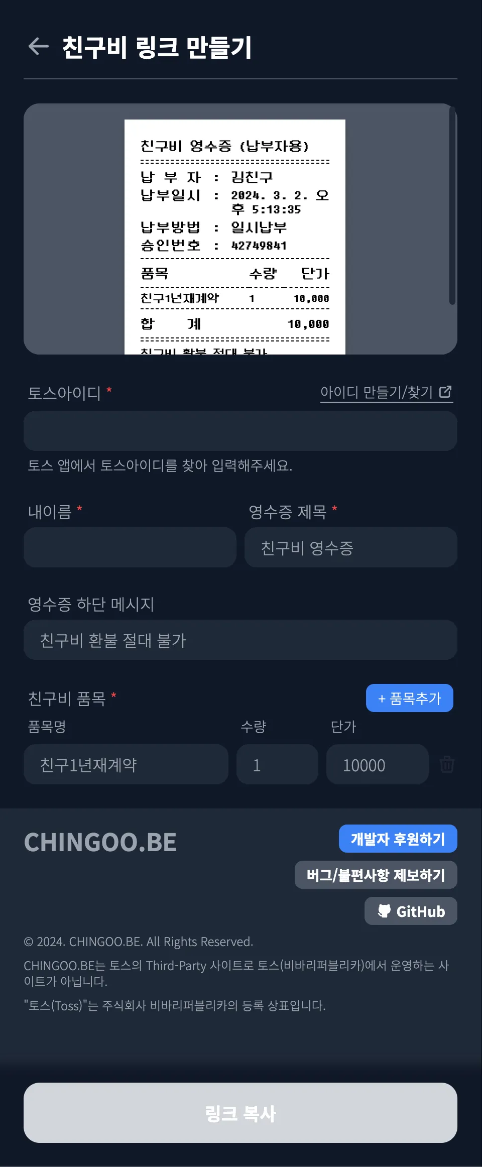 client๋ ์๋ต์ ํตํด ๋ต์ UUID๋ฅผ ๊ฐ์ง๊ณ ์น๊ตฌ๋น ์์์ฆ ๋งํฌ๋ฅผ ํด๋ฆฝ๋ณด๋์ ๋ณต์ฌํจ.