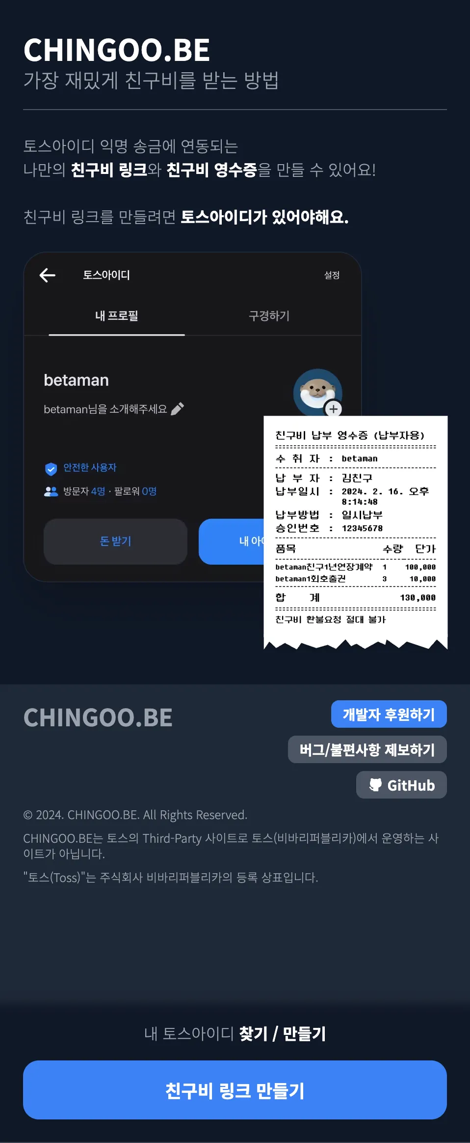 ํธํฐ์ CHINGOO.BE๋ฅผ ํตํ ํ๋ก์ ํธ ํ์ ๋งํฌ ๋ฒํผ, ๋ฒ๊ทธ/๋ถํธ์ฌํญ ์ ๋ณด ๋ฒํผ, GitHub ๋ ํฌ์งํ ๋ฆฌ ๋ฒํผ์ ์ ๊ณตํจ.
